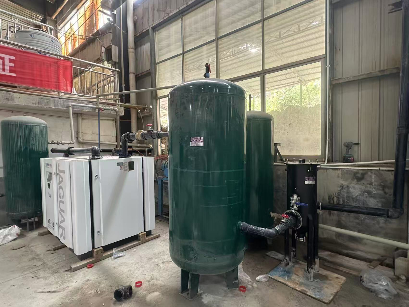 湖南某印刷有限公司一共有四台用气设备,配备多台复合泵,复合泵属于单对单供气,数量多,噪音大,热量高,用工环境较为恶劣,真空度不恒定,捷豹空压机针对该客户设备现状分析,建议设立集中用气系统,统一管理。液冷永磁电机效率提升 25/48%