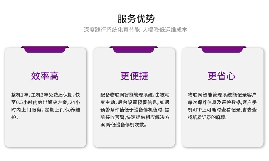 捷豹无油螺杆机采用二级压缩、永磁变频配置,主机、整机完全自主研发。主机采用可靠多级密封轴封系统,使空气压缩全程没有润滑参与,产出压缩空气纯净无油。整机独特进风口及箱板隔音设计,使机器噪音降至最低。